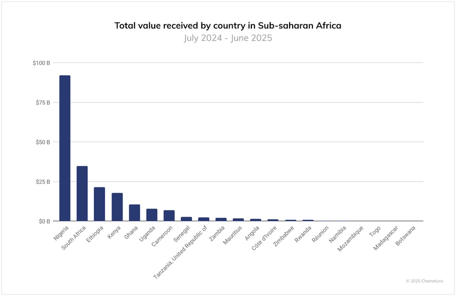 Crypto value received by African countries in the Sub-Saharan region between July 2024 and June 2025. Source: Chainalysis