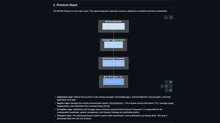 The components of the BitChat messaging application tech stack. Source: GitHub