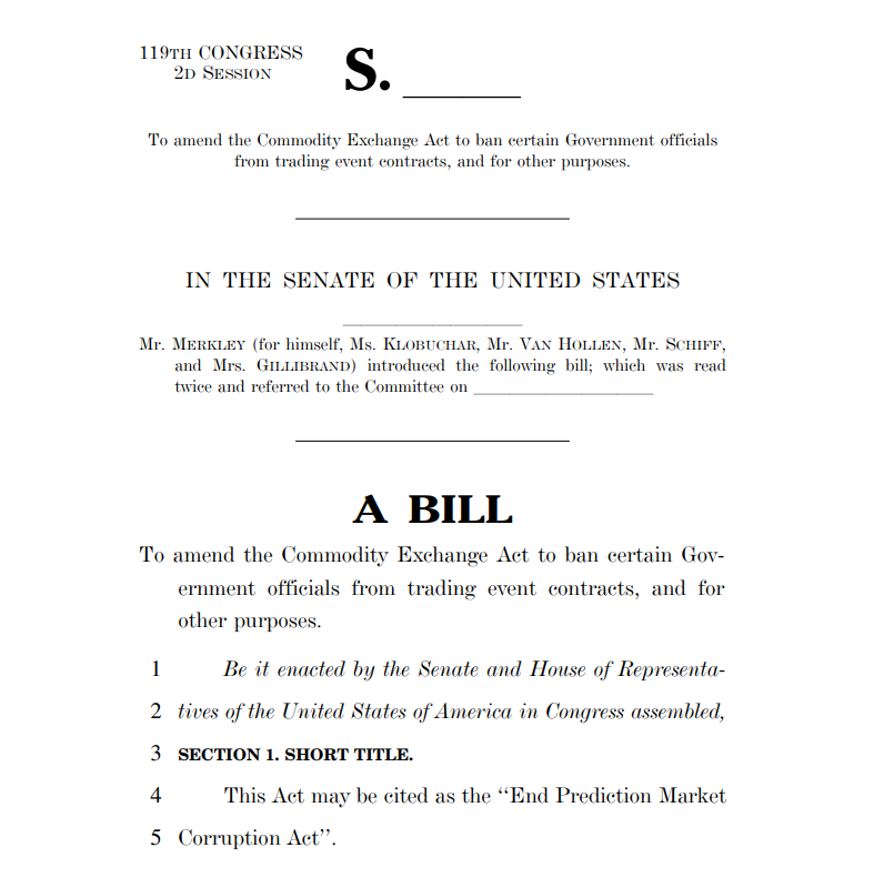 End Prediction Market Corruption Act. Source: Merkley.senate.gov